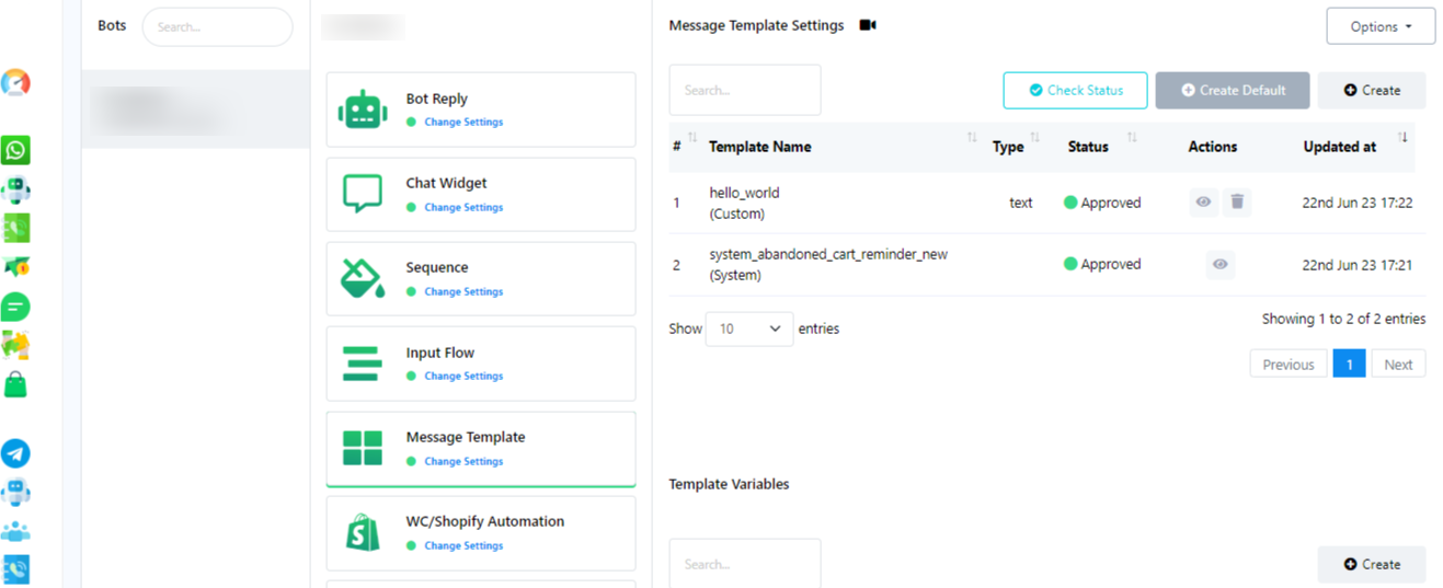 - Go to Wondropy Dashboard and navigate to the Bot manager section.